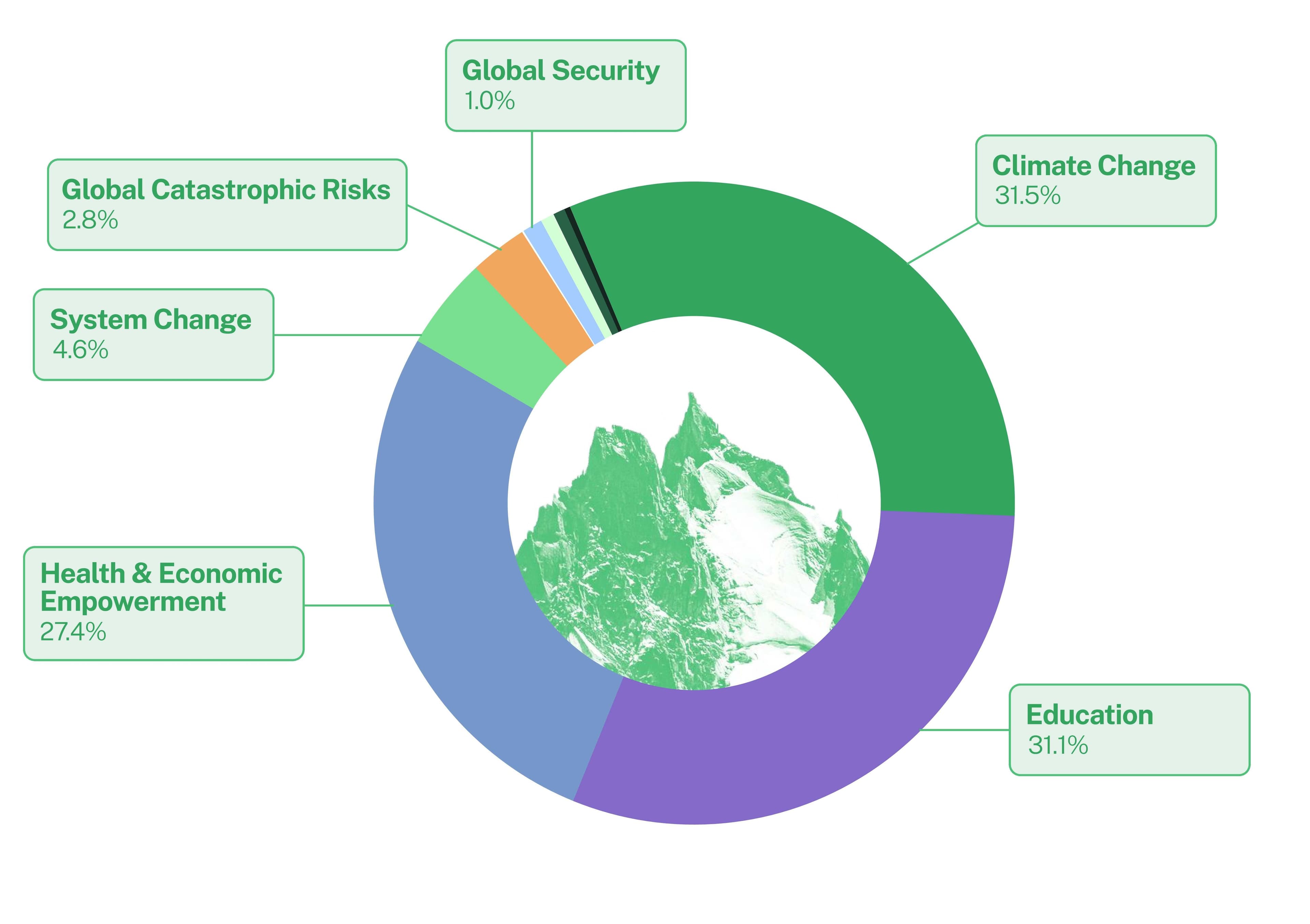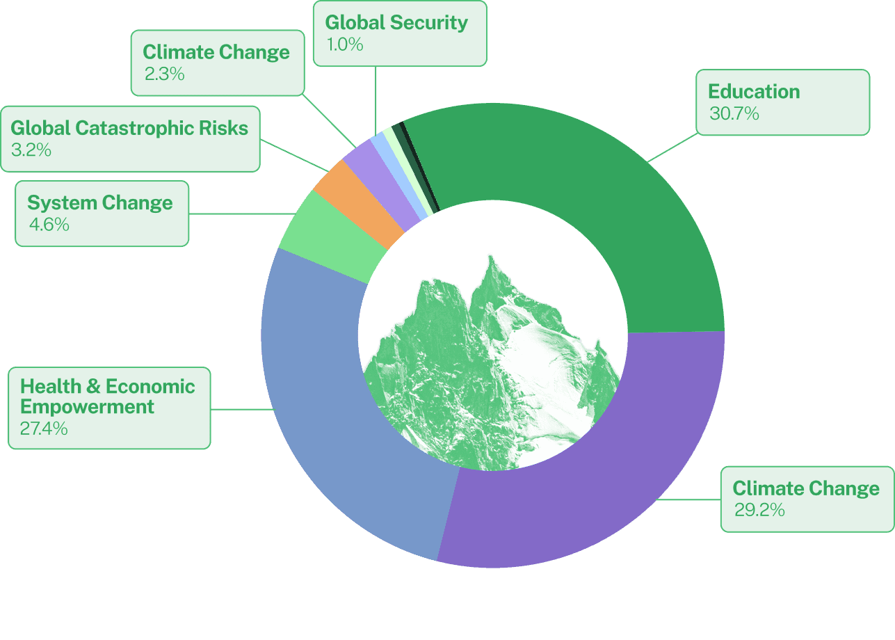 In 2025, for every $1 donated to Founders Pledge, we helped to move $31.10 to the charitable sector, and we directed $16.90 to our high-impact funding opportunities.