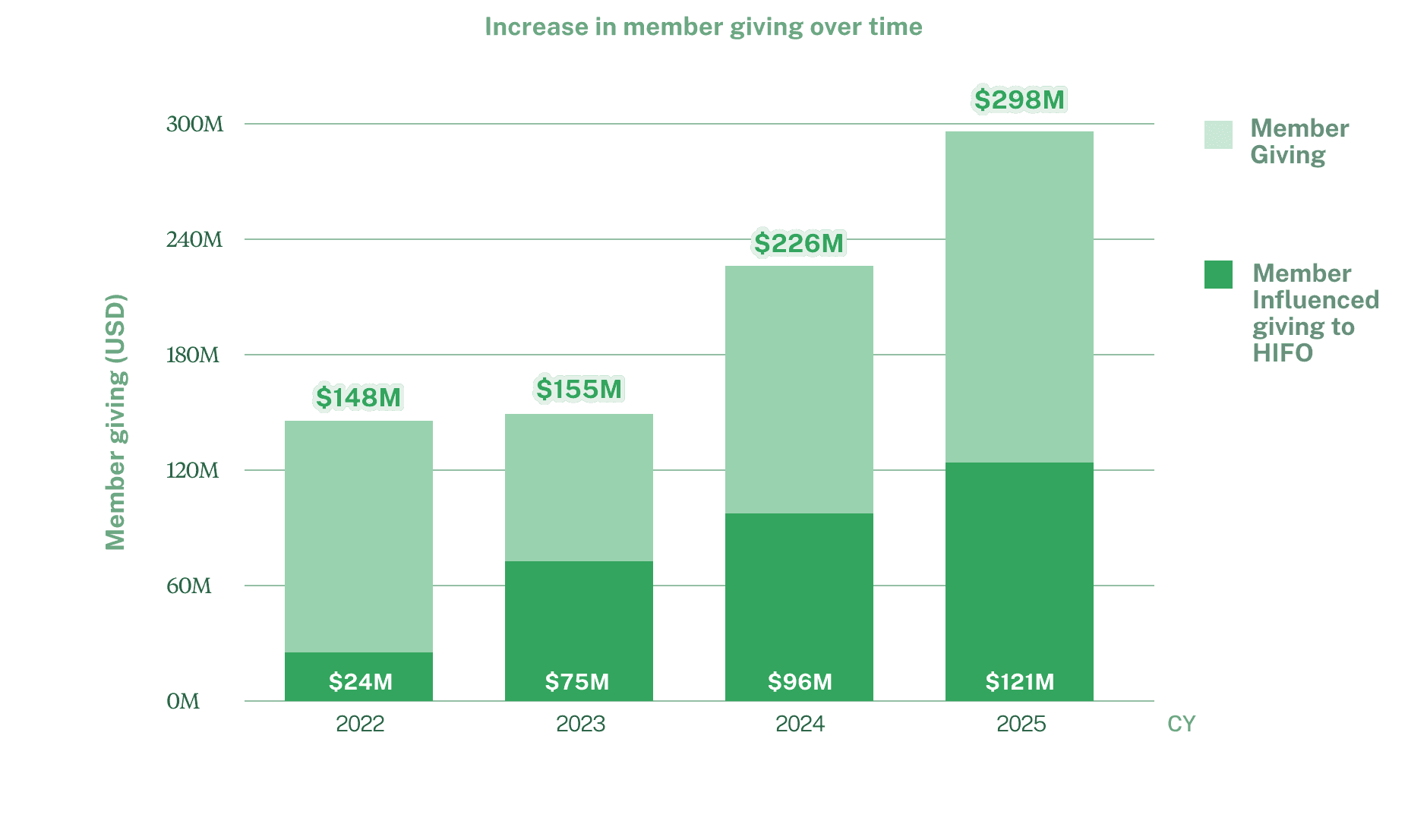 Our members increased their total charitable giving by 32% in 2025, and gave more to our high-impact funding opportunities (HIFO) than ever before.